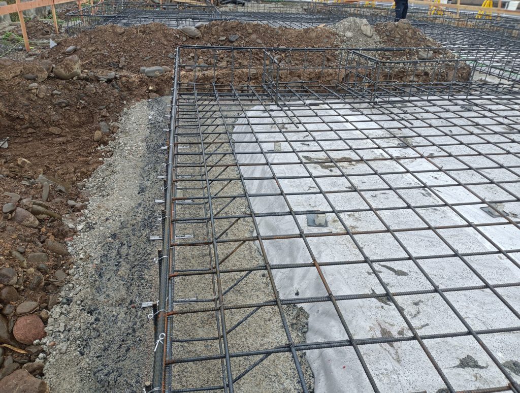 - 防湿シートと捨てコン:湿気を防ぎ、正確な型枠施工の基準をつくる。